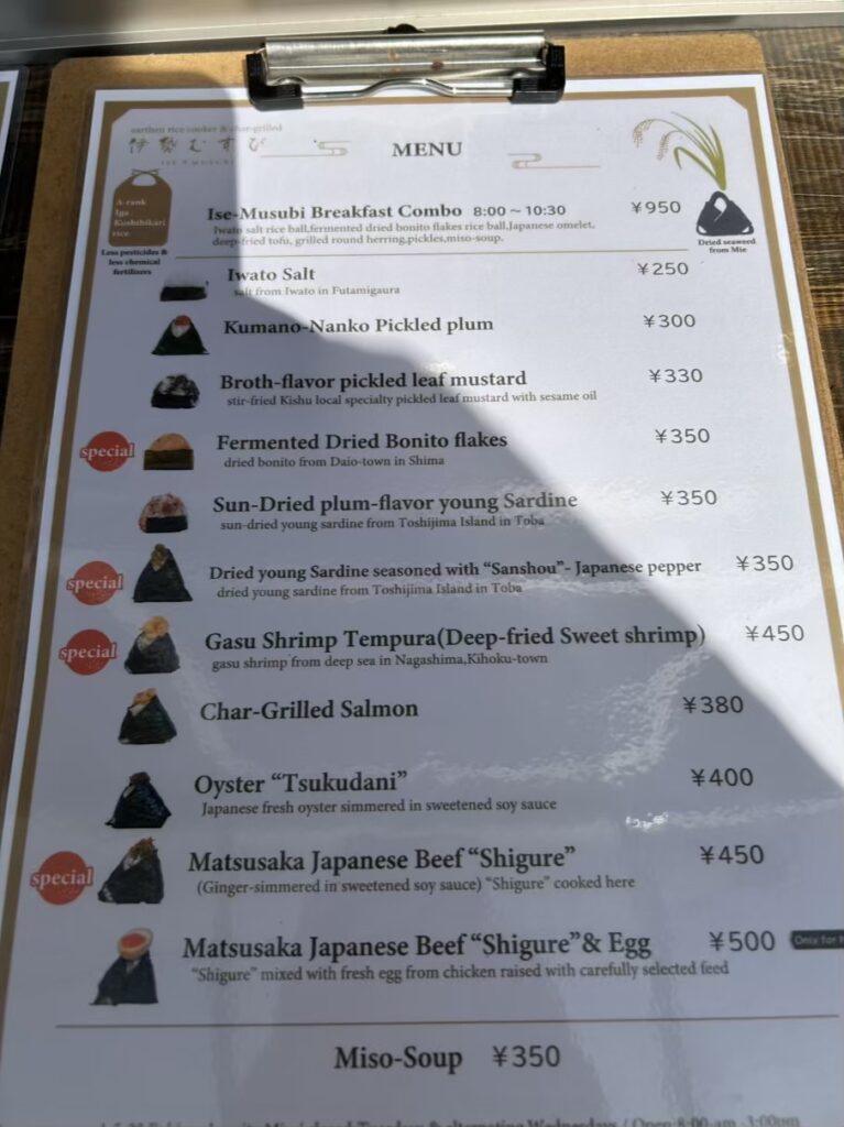 Since the shop opens as early as 8:00 a.m., it’s perfect for hotel guests looking for breakfast or anyone wanting a light bite before visiting Ise’s Outer Shrine (Geku).